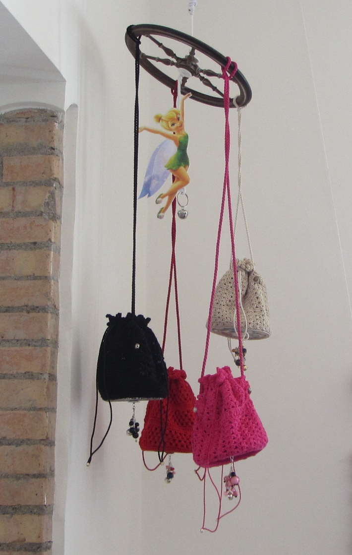 Il laboratorio ne ha realizzate di due tipi: uno di medie dimensioni in fettuccia e foderato all’interno, l'altro più piccino in filo. Quest’ultimo modello pensato anche per le più giovani è stato chiamato Trilly perché corredato di un ciondolo con campanellino.