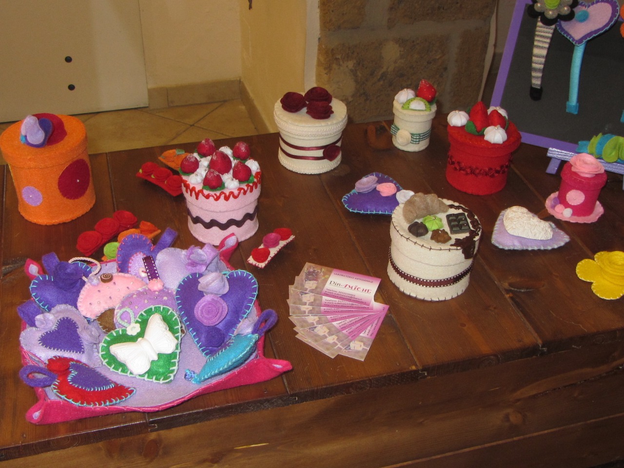 Le DinAmiche non dimenticano mai i più piccoli: utilizzando i loro giocattoli in disuso per realizzare divertenti oggetti, o componendo golosi dolcetti in tessuto da utilizzare come bomboniere o simpatici contenitori; e se qualche bottoncino è di troppo lo incollano su simpatiche cartoline di auguri.